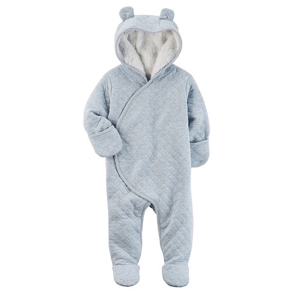 Made of polyester cotton blend this stylish pram features side snap closure 3d ears mittens built in booties and sherpa lining for ultimate warmth.